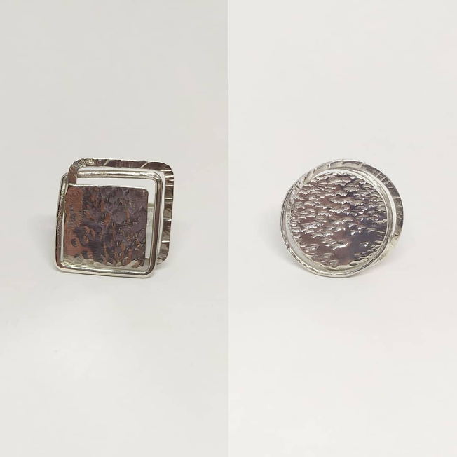 Les bijoux de cette gamme sont inspirés de l'architecture, de formes géométriques, que l'on retrouve dans la bague et le pendentif "cubes".